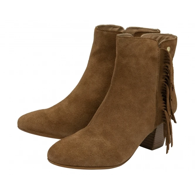 The Ravel Laxey will effortlessly transition you through the seasons. Crafted from premium suede, this tan Ravel ankle boot with an almond pointed toe, a 6cm wooden stack effect Cuban heel and a functional outside zip is complete with playful fringe detailing. This women’s boot will become a go-to style for this season. Team Laxey with a long maxi dress for the perfect trans-season look. Laxey is also available in black suede.